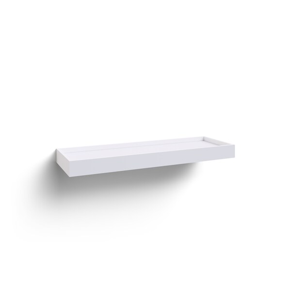 The floating shelf comes with leg screws and Molly bolts for easy installation, as well as caps to hide the screw heads for a neat and understated look. The grey and white finishes are made from Particle Board, while custom finishes have a Plywood construction. Available in your choice of color to match the rest of your kitchen cabinetry.