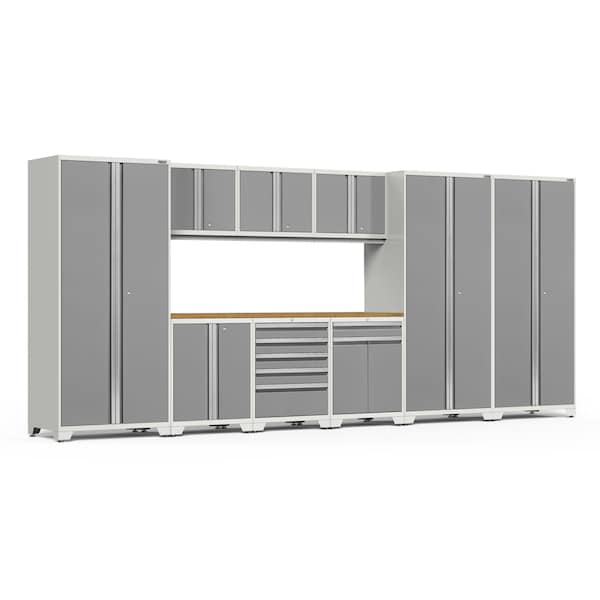 Pro Series 10 Piece Garage Cabinet Set with Bamboo Top, White
