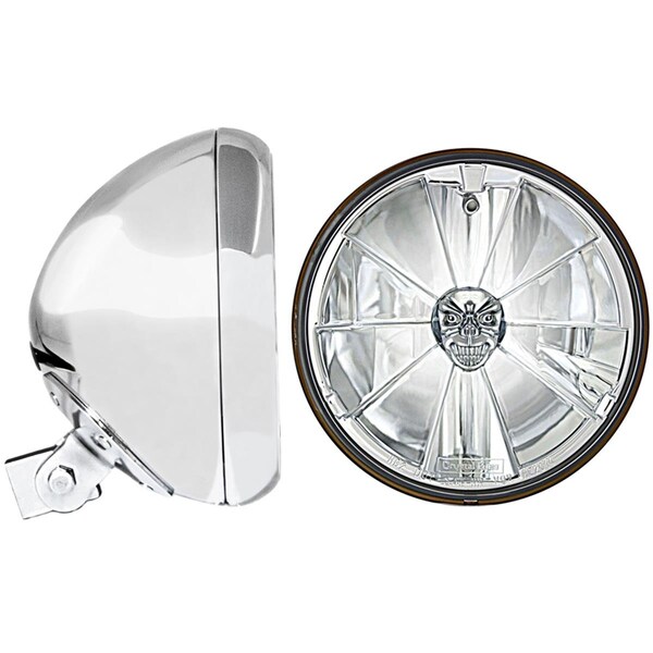 7 in. Universal Headlight Bucket, Chrome with T70700-SR PC Pie Cut Skull Headlamp (Discontinued)