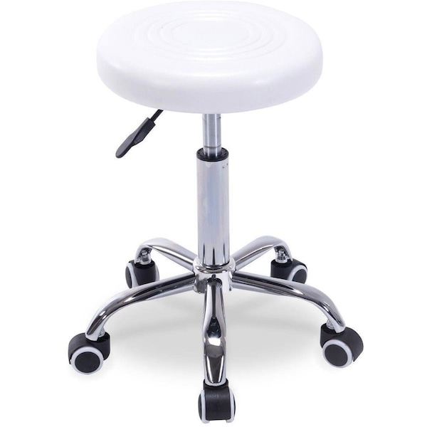 Salon Spa Stool Round Seat Hydraulic Adjustable Height, White