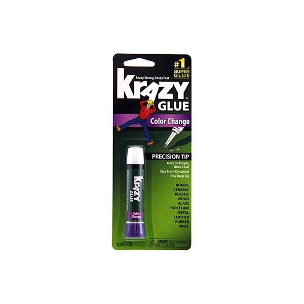 2 Gram Tube Krazy Glue With Color Change Formula Goes On Purple Dries Clear Bonds Wood Metal Ceramics Pottery Rubber Vinyl Leather & Plastic Stay Fresh Container Carded.