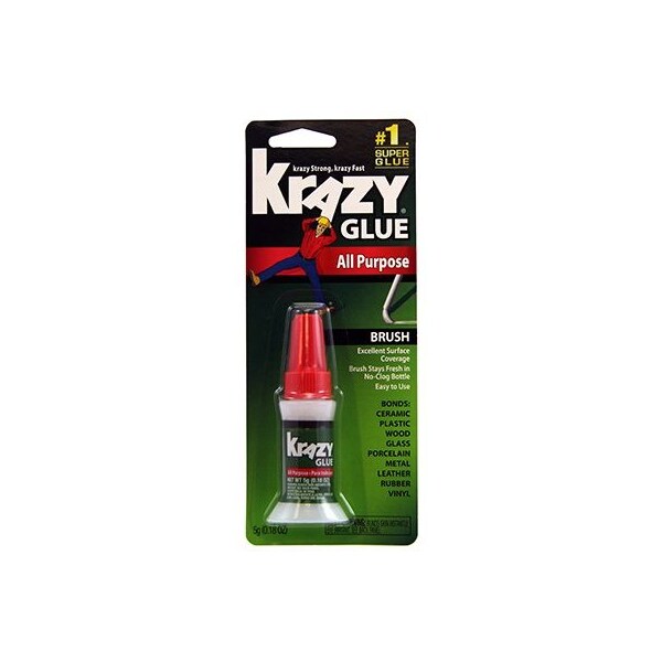 5 Gram Brush On Applicator Krazy Glue Provides Excellent Surface Coverage Great For Hard To Reach Areas Brush Stays Fresh In No Clog Bottle For Use On Plastic Ceramic Glass Wood Leather Great For Hard-To-Bond Surfaces Like Rubber Metal & Vinyl Carded.