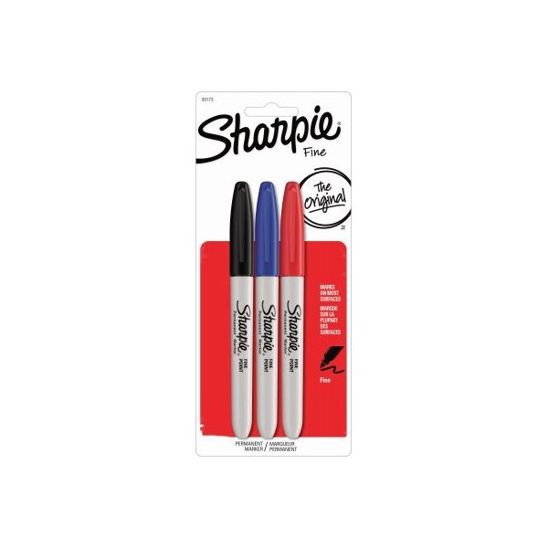 Sharpie 3 Pack Fine Point Permanent Marker Red Blue & Black.