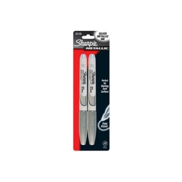 Sharpie 2 Pack Silver Metallic Fine Point Permanent Marker Perfect For Marking Dark Surfaces Bright Silver Metallic Ink Provides Maximum Impact Permanent On Most Hard To Mark Surfaces Such As Glass Metal Photos Foils Coated Paper & Most Plastics Not For Use On Cloth.