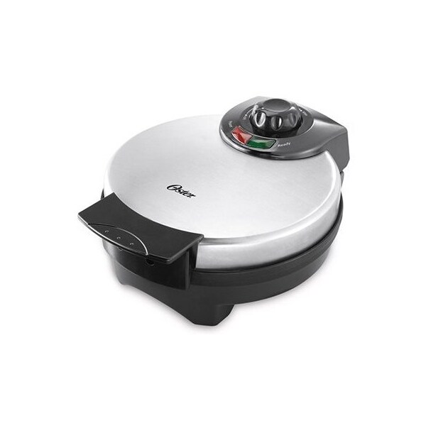 Oster, Stainless Steel Belgian Waffle Maker, Adjustable Temperature Control For Light Fluffy Or Crispy Waffles, NonStick, Cool Touch Handle, Power On Ready Indicator Lights, 8 Round Baking Plate, Measures 85L x 52W x 108H