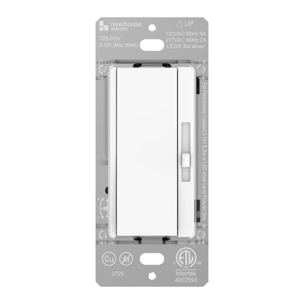 Take control of your lighting with the Newhouse Electric White 3-Way/Single Pole 0-10V Dimmer Switch for LED Drivers or Fluorescent Ballasts, engineered for precision and style. Whether you're brightening a workspace or setting the mood in a living room, this versatile dimmer gives you the flexibility you need with a look that fits right into modern home decor. Designed for both LED drivers and fluorescent ballasts, it's a reliable choice for architects, builders, and homeowners who want professional-grade lighting control in a sleek, accessible design. This LED dimmer switch delivers smooth, flicker-free adjustment across a full brightness range. You can easily fine-tune your ideal light level with the slide dimmer, while the large paddle switch provides effortless ON/OFF operation. A built-in trim adjustment lets you customize both low-end and high-end dimming for maximum control, perfect for reducing glare and optimizing energy efficiency. Installation is quick and flexible. You can set it up as a single-pole or 3-way light control switch, depending on your lighting layout. It's rated for 120V to 277V systems, making it suitable for residential, commercial, or mixed-use environments such as offices, retail stores, or studios. That means you get the same reliable performance across your entire property-no matter how complex the setup. With its clean white finish and minimalist profile, this modern wall light dimmer switch complements contemporary interior design while maintaining a professional appearance. It blends seamlessly into existing wall plates and matches today's modern lighting fixtures like troffers, panels, and downlights. Get your Newhouse Electric White 3-Way/Single Pole 0-10V Dimmer Switch for LED Drivers or Fluorescent Ballasts today and experience adjustable illumination that combines reliability, style, and precision control for every environment.
