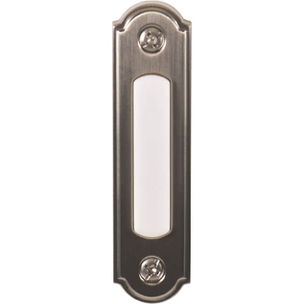 LED Lighted Metal Door Chime Push Button (Satin Nickel), Surface Mount, Wired Doorbell Button