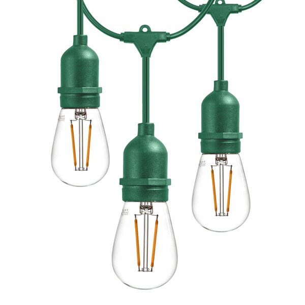 48-ft String Lights w/(16) Plastic LED Filament Bulbs Included, Green Cord