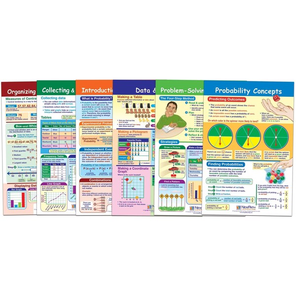 Math Bulletin Board Chart Set, Data, Graphs + Probability, Set of 6 (Discontinued)