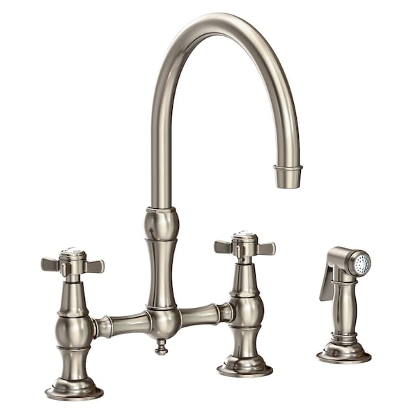 Kitchen Bridge Faucet With Side Spray in Antique Nickel