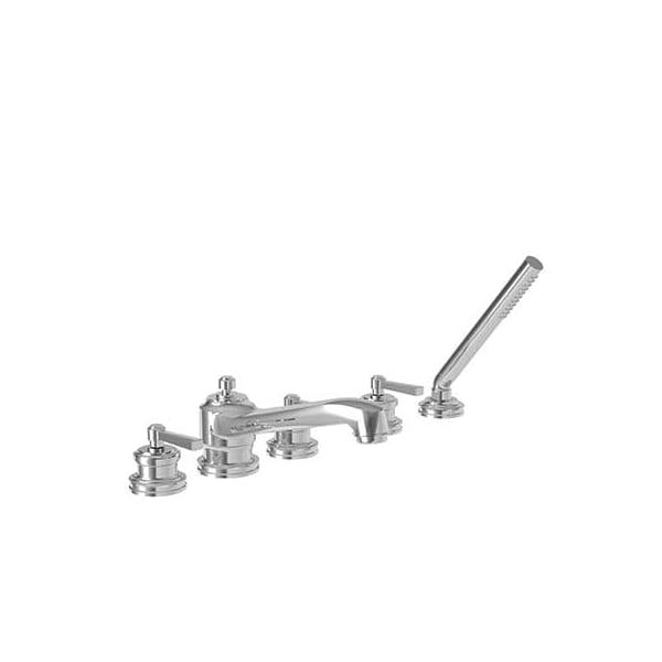 Tub Faucet With Hand Shower, 5, Deck, Matte White