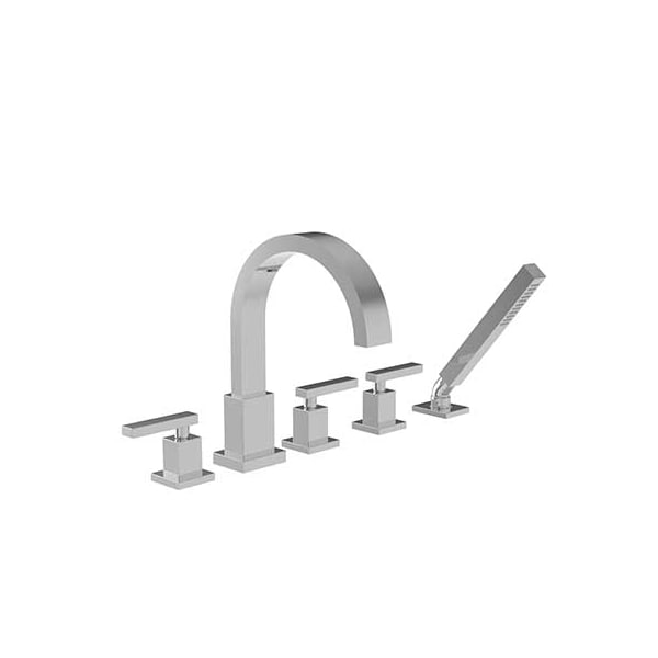 Tub Faucet with Hand Shower, 5, Deck, Matte White