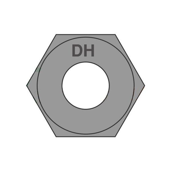 Heavy Hex Nut, 1"-8, Steel, Grade DH, Plain, 63/64 in Ht, 75 PK