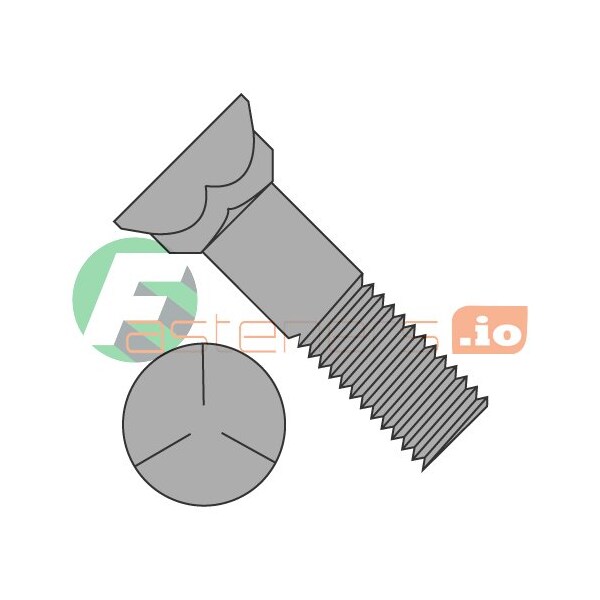 Plow Bolt, 1/2"-13 Thrd Sz, 2-1/4" L, Steel, Plain, 100 PK