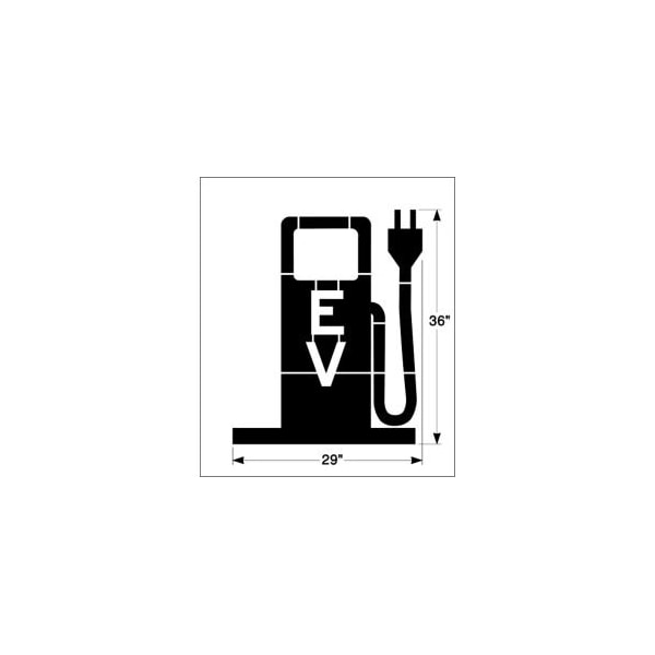 Paint charging station areas with this 36inh x 30inw electric vehicle charging station symbol ev on gas pump symbol. 1/8in thick polytough plastic has a lifetime warranty. Stencil image dimensions are 29inw x 36inh.