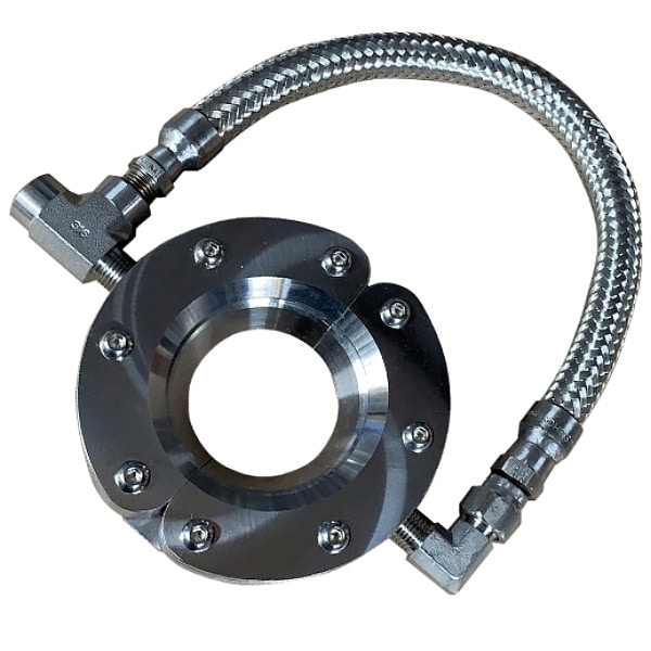 Ring Blade air wipes, Throat Diameter 4 in, Overall Ring Diameter 6 3/4 in, Maximum Flow Rate 51 scfm, Body Material Stainless Steel, Inlet Size 1/4 in, Air Inlet Type NPT, Inlet Gender Female, Number of Air Inlets 2, Product Type Air Wipe Only, Air Consumption per inch 51 scfm, Body Material Grade 316L, Open Air Gap Setting 0.002 in, Maximum Operating Temperature 800 Degrees F, For Fluid Type Compressed Air, Series Ring Blade(R)
