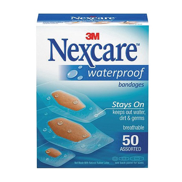 (20) Waterproof Bandages 7/8" x 1-1/16", (15) Waterproof Bandages 1-1/4" x 2-1/2", (15) Waterproof Bandages 1-1/16" x 2-1/4"