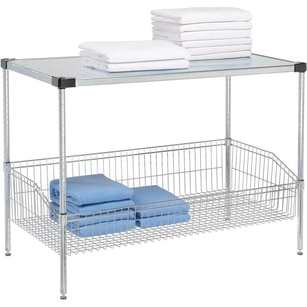 2 Shelf, Chrome Basket Wire Shelving Unit, Solid Top Shelf, 48inW x 24inD x 34inH