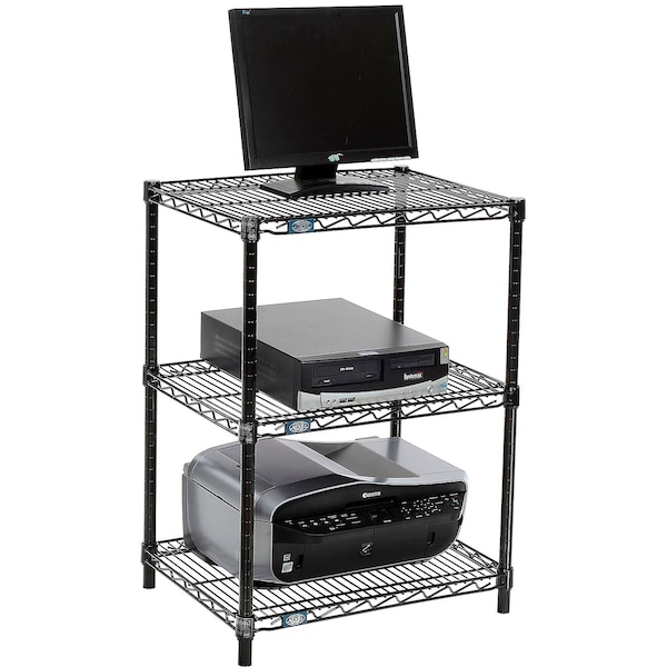 3-Shelf Black Wire Shelf Printer Stand, 24inW x 18inD x 34inH