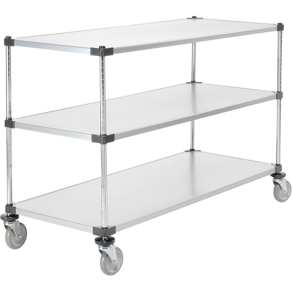 3 Shelf Cart, Galvanized, 60inW x 24inD x 39inH, Polyurethane Casters