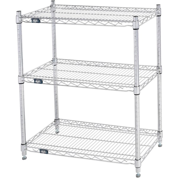3 Shelf, Chrome Wire Shelving Unit, Starter, 30inW x 18inD x 34inH