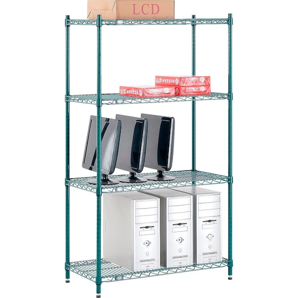 36W X 14D X 63H Green Epoxy Wire Shelving