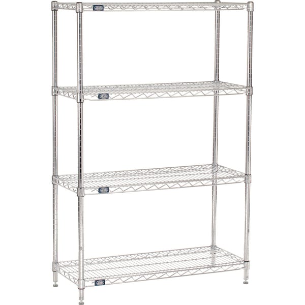 4 Shelf, Chrome Wire Shelving Unit, Starter, 42inW x 14inD x 54inH