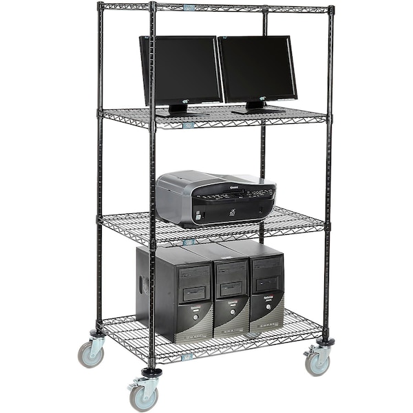 4-Shelf Mobile Wire Computer LAN Workstation, 36inW x 24inD x 69inH, Black