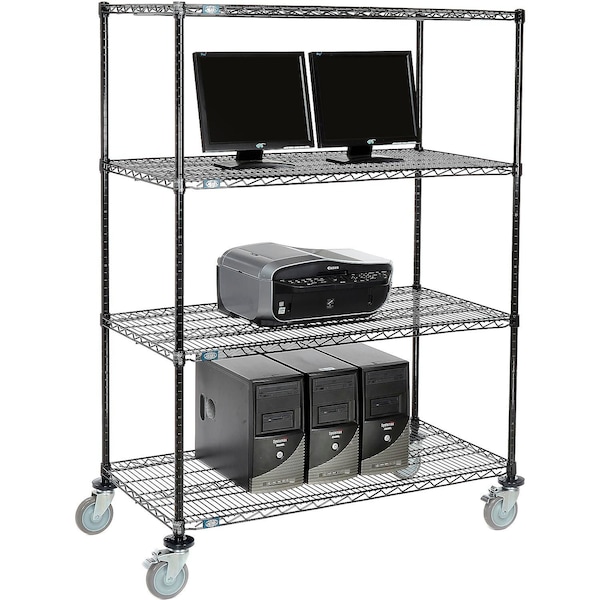 4-Shelf Mobile Wire Computer LAN Workstation, 48inW x 24inD x 69inH, Black