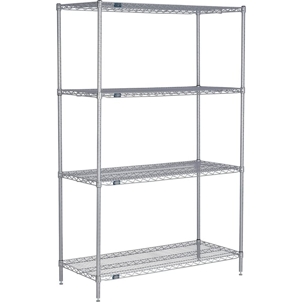 4 Shelf, Nexelate Silver Epoxy Wire Shelving Unit, Starter, 24inW x 21inD x 54inH