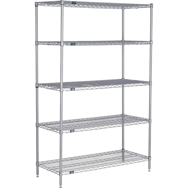 5 Shelf, Nexelate Silver Epoxy Wire Shelving Unit, Starter, 72inW x 36inD x 86inH