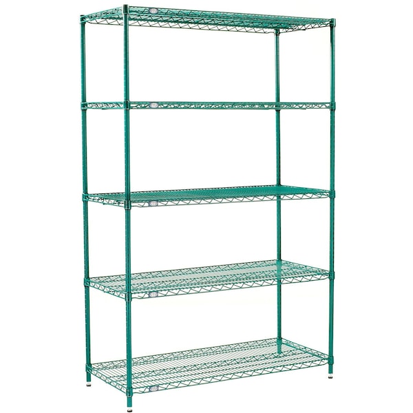 5 Shelf, Poly-Green Wire Shelving Unit, Starter, 24inW x 14inD x 74inH
