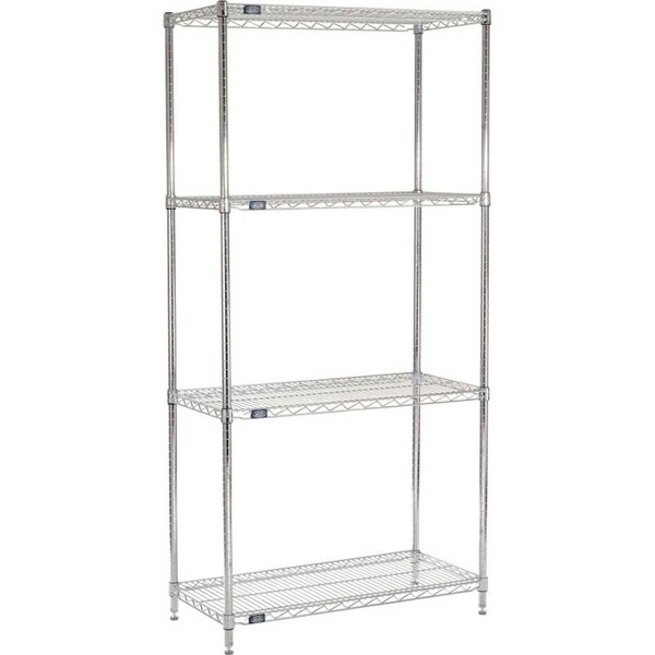 . Bright, chrome over nickel electro plating creates a brilliant high gloss finish. Open design maximizes air and light circulation and minimizes dust accumulation. Shelves easily adjust without tools and align accurately at 1 increments. Shelf clips snap on post, allowing shelf collar to slide over for a secure fit. 5 Tier Starter Units include 5 shelves, 4 posts, shelf clips and 4 adjustable leveling feet with non-marring floor glides which allow compensation for uneven floors.