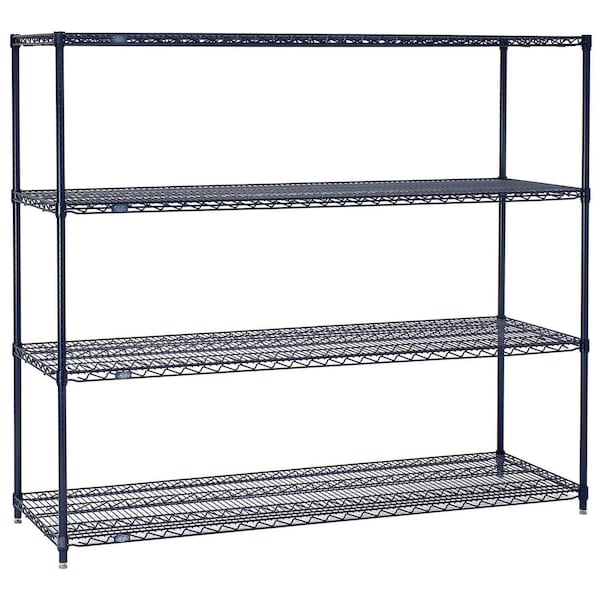 Includes 4 posts with leveling feet, 4 shelves and snap-on sleeves to secure shelves to posts. 600 lb. capacity per shelf. Easy assembly.