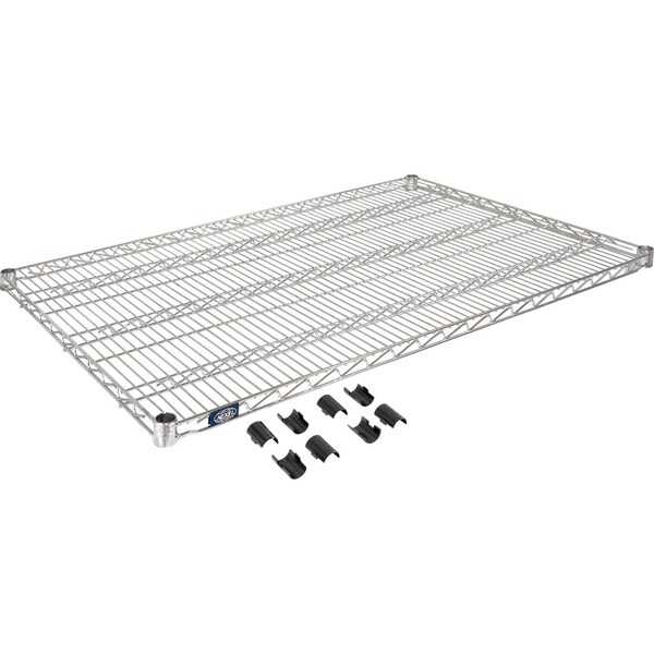 Nexel S3048C Chrome Wire Shelf 48inW x 30inD. Customize your shelving units with additional shelves or mix shelves and posts to create a custom unit to maximize storage space. Chrome is an electro-plated nickel-chrome finish that is attractive enough for retail display, but withstands warehouse conditions as well. Features: Open design to maximize air and light circulation and minimize dust accumulation. Includes 1 shelf and 4 shelf clips. Shelves easily adjust without tools at 1in increments. NSF approved.