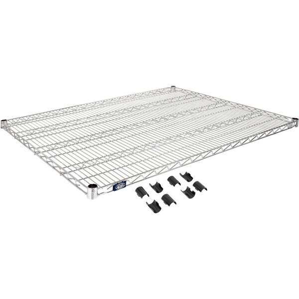 Nexel S3648C Chrome Wire Shelf 48inW x 36inD. Customize your shelving units with additional shelves or mix shelves and posts to create a custom unit to maximize storage space. Chrome is an electro-plated nickel-chrome finish that is attractive enough for retail display, but withstands warehouse conditions as well. Features: Open design to maximize air and light circulation and minimize dust accumulation. Includes 1 shelf and 4 shelf clips. Shelves easily adjust without tools at 1in increments. NSF approved.