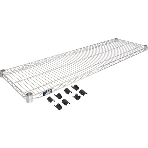 Nexel S1454C Chrome Wire Shelf 54inW x 14inD. Customize your shelving units with additional shelves or mix shelves and posts to create a custom unit to maximize storage space. Chrome is an electro-plated nickel-chrome finish that is attractive enough for retail display, but withstands warehouse conditions as well. Features: Open design to maximize air and light circulation and minimize dust accumulation. Includes 1 shelf and 4 shelf clips. Shelves easily adjust without tools at 1in increments. NSF approved.