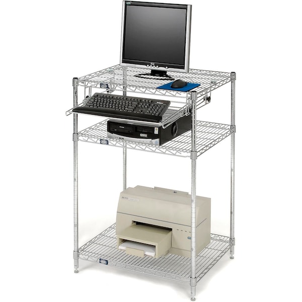 Chrome Wire Shelf Computer Workstation with Keyboard Tray, 30inW x 24inD x 42inH