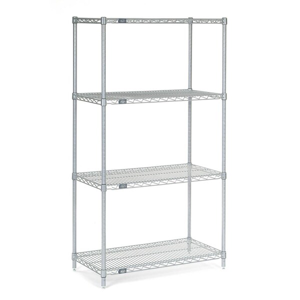 Open wire shelving permits sprinkler, air and light penetration and minimizes dust accumulation. Easy slide-off shelf surfaces speed stocking and picking. Wire shelves adjust without tools and align on numbered posts at 1 increments. Meets NSF standards. Easy assembly. Starter Shelving Unit includes 4 posts with leveling feet, 4 shelves and snap-on sleeves to secure shelves to posts.