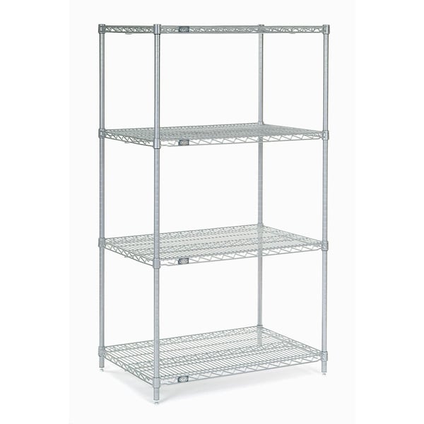 Open wire shelving permits sprinkler, air and light penetration and minimizes dust accumulation. Easy slide-off shelf surfaces speed stocking and picking. Wire shelves adjust without tools and align on numbered posts at 1 increments. Meets NSF standards. Easy assembly. Starter Shelving Unit includes 4 posts with leveling feet, 4 shelves and snap-on sleeves to secure shelves to posts. Add-On Shelving Units allow unit expansion to make the most of your storage space. Includes 2 posts with leveling feet, 4 shelves, snap-on sleeves and 8 S-hooks to join units.