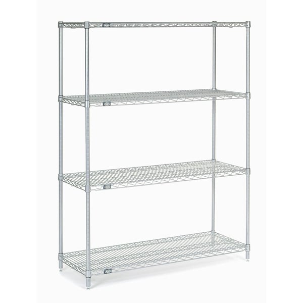 Open wire shelving permits sprinkler, air and light penetration and minimizes dust accumulation. Easy slide-off shelf surfaces speed stocking and picking. Wire shelves adjust without tools and align on numbered posts at 1 increments. Meets NSF standards. Easy assembly. Starter Shelving Unit includes 4 posts with leveling feet, 4 shelves and snap-on sleeves to secure shelves to posts. Add-On Shelving Units allow unit expansion to make the most of your storage space. Includes 2 posts with leveling feet, 4 shelves, snap-on sleeves and 8 S-hooks to join units.