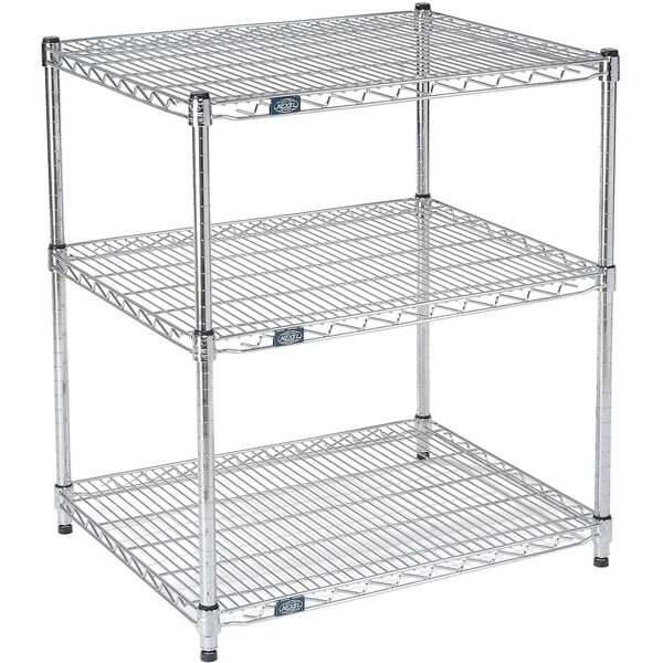 Ideal for storing cleaning chemical concentrates in 5 gallon or smaller containers during operation of Global Industrial™ Compact Chemical Dispensers. Shelves can also be used for additional chemicals, spray bottles, buckets, cleaning wipes and other cleaning supplies. The easy-to-assemble Cleaning Chemical Storage Stand features 3 adjustable height chrome wire shelves that can support up to 300lbs per shelf. The wire construction promotes air circulation and prevents dust build-up. Meets the standards of the National Sanitation Foundation.