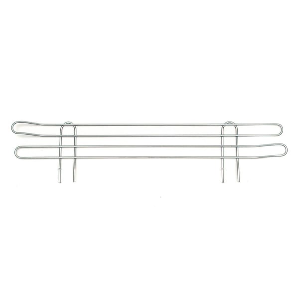 Prevents items from falling off. Ideal for front back or sides of shelving units. 4 high. Chrome.