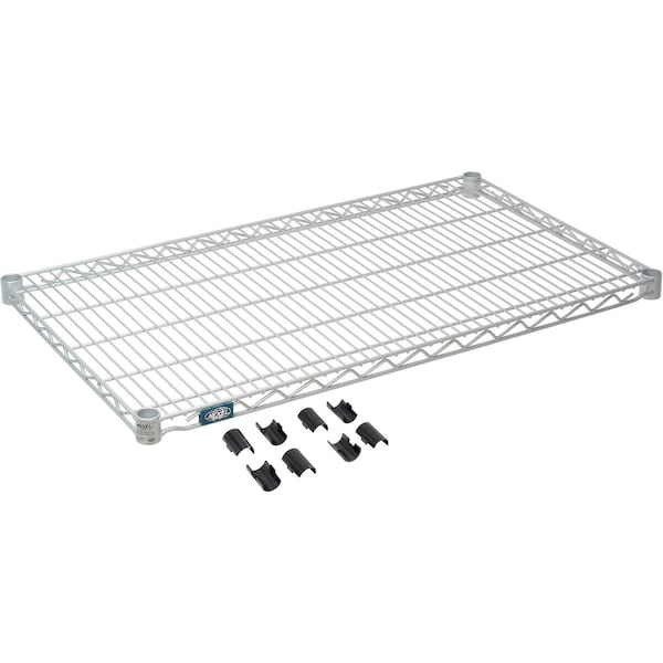 Nexel S2136EP Nexelate Wire Shelf 36inW x 21inD. Customize your shelving units with additional shelves or mix shelves and posts to create a custom unit. Nexelate is an attractive finish that consists of a Silver Epoxy powder-coat over a rust inhibiting undercoat. NSF approved for wet or dry use. Features: Open design to maximize air and light circulation and minimize dust accumulation. Includes 1 shelf and 4 shelf clips. Shelves easily adjust without tools at 1in increments. NSF approved for wet or dry use.