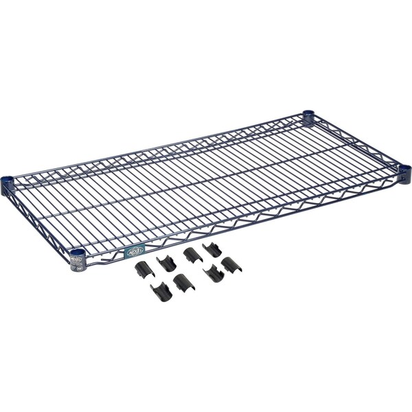 Nexel S1836N Nexelon Wire Shelf 36inW x 18inD. Customize your shelving units with additional shelves or mix shelves and posts to create a custom unit. Nexelon features a top of the line blue metallic finish designed to handle extreme wet, hot or cold environments. NEXGard, an anti-microbial agent, protects the epoxy coating from bacteria, mold, and mildew that causes odors and product degradation. NSF approved for wet or dry use. Features: Open design to maximize air and light circulation and minimize dust accumulation. Includes 1 shelf and 4 shelf clips. Shelves easily adjust without tools at 1in increments. NEXGard anti-microbial agent. NSF approved for wet or dry use.