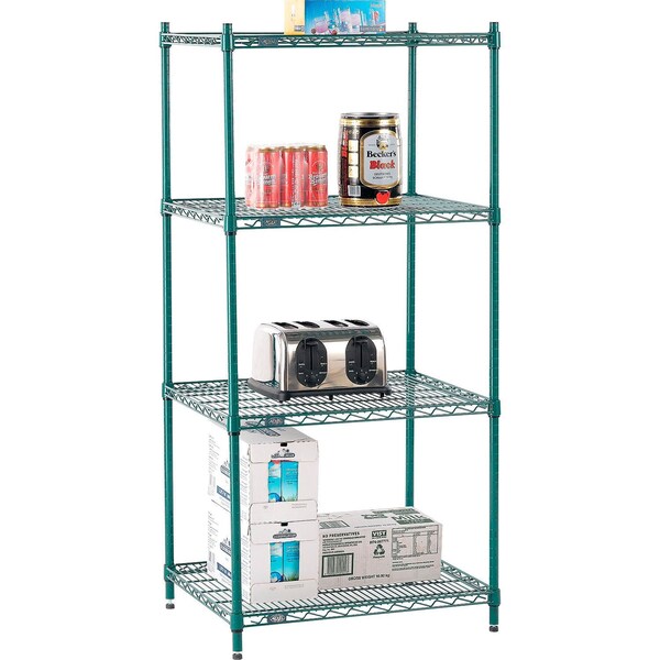 Poly-Green, 4 Tier, Wire Shelving Starter Unit, 30W x 24D x 54H