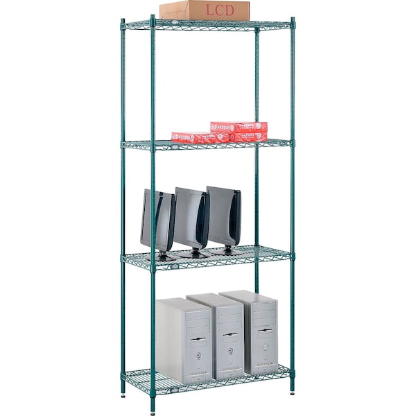Poly-Green, 4 Tier, Wire Shelving Starter Unit, 36W x 14D x 86H