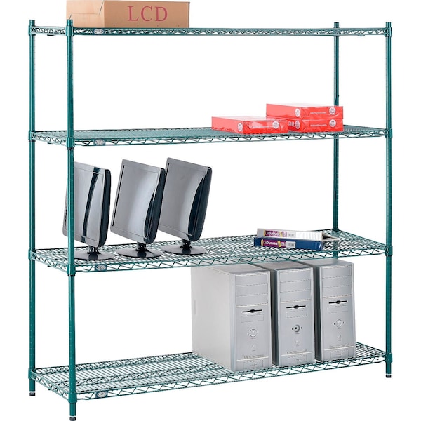 Poly-Green, 4 Tier, Wire Shelving Starter Unit, 60W x 14D x 54H