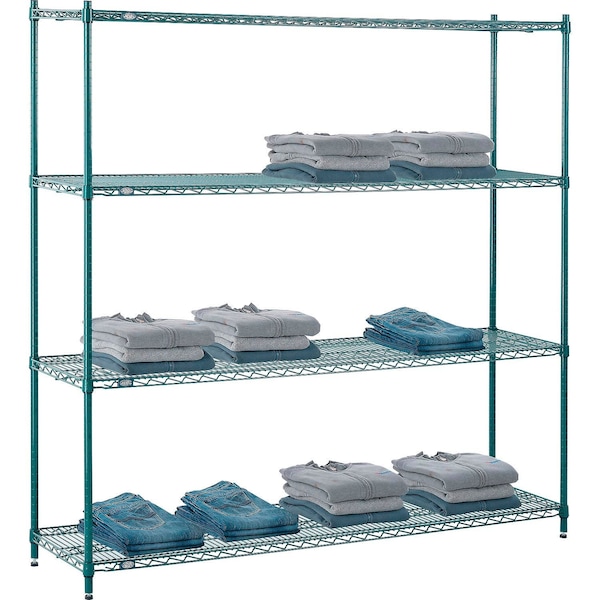 Poly-Green, 4 Tier, Wire Shelving Starter Unit, 72W x 14D x 74H