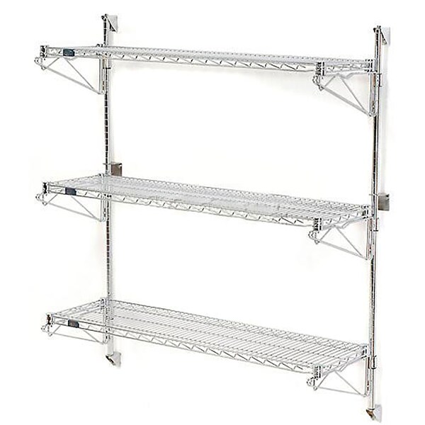 Poly-Green Wall Mount Wire Shelving, 54W x 24D x 54H 3-Shelf Starter